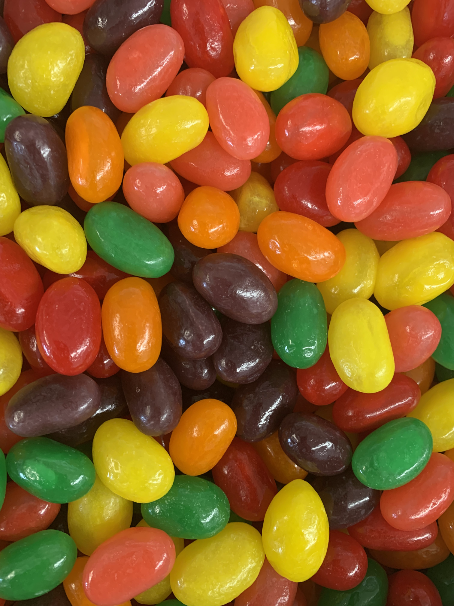 A 12 oz. bag of jumbo spiced jelly beans. The flavors are Anise, peppermint, Spearmint, Cinnamon, Sassafras, Wintergreen & Clove.