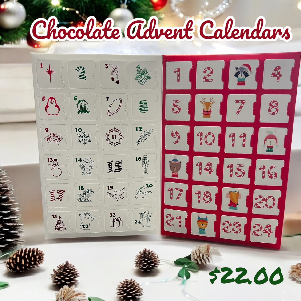 Get yourself or loved one a advent calendar filled with 24 different pieces of Ben Heggy's chocolates. A perfect daily treat leading into Christmas. Two different options to choose from.